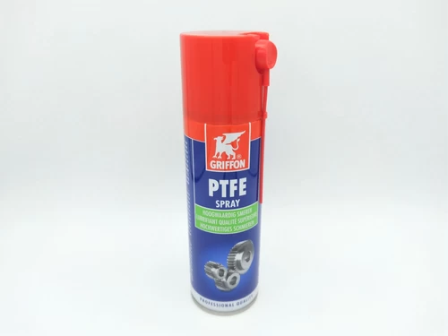 Teflonspray (ook wel PTFE of polytetrafluoretheen genoemd) is een multifunctioneel smeermiddel dat bestand is tegen bijna alle chemicaliën. Teflonspray/PTFE is geschikt voor het smeren van metalen en kunststoffen die onder langdurige en hogere belasting staan. Hierbij kunt u denken aan kettingen, machines, scharnieren en katrollen. Bij Postma en Postma kunt u Griffon teflonspray/PTFE kopen. Deze spray is vochtwerend, niet ontvlambaar en door zijn zuiverheid nagenoeg niet schadelijk voor de gezondheid. Een veilig, multifunctioneel middel voor thuisgebruik dus!