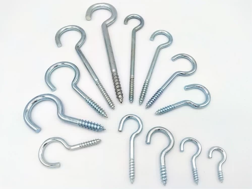 Zoals veel ijzerwaren, komen schroefhaken in verschillende soorten en maten. Een schroefhaak wordt gebruikt om iets op te hangen aan de wand of aan het plafond. Een schroefhaak is te koop in gegalvaniseerd staal, roestvaststaal, messing of wit geëpoxeerd staal.