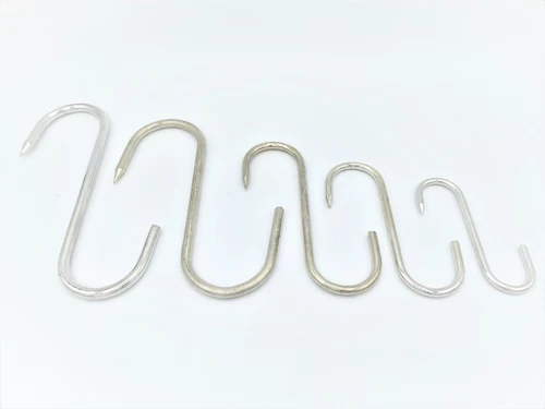Vleeshaken zijn S-vormige haken met aan één poot van de S een punt. Deze punt is natuurlijk bedoeld om door het op te hangen vlees heen te prikken. Meestal worden de vleeshaken echter ergens anders voor gebruikt. Omdat een vleeshaak namelijk in veel verschillende maten te koop is kan hij voor van alles worden gebruikt. Vleeshaken kunnen eenvoudig over een rand worden gehaakt om bijvoorbeeld keukengerei op te hangen. Onze vleeshaken zijn per stuk te koop.