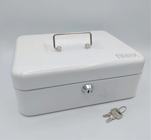 In onze winkel zijn verschillende geldkisten van de fabrikant Filex Security verkrijgbaar. Deze stevige metalen geldkisten met cilinderslot variëren van eenvoudige, handzame uitvoeringen tot grotere kisten met meerdere biljetvakken en muntvakken. De Filex Security geldkisten worden geleverd met twee sleutels. Voor meer informatie kunt u altijd langskomen in onze winkel.