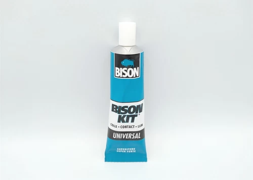 Старомодно контактно лепило, кой все още го има? Postma и Postma, разбира се. В гамата на Bison имаме два вида контактно лепило в различни версии. Bison е водещата марка лепила и уплътнители в Бенелюкс и основен производител далеч отвъд тях. Има Bison Kit, което е просто старомодно контактно лепило, и Bison Tix, което е същият продукт в по-гъста гел версия, която не се разтича толкова лесно. Bison Kit се предлага и в прозрачна форма, така че да не се вижда жълтеникав слой. Контактните лепила се предлагат в тубичка или бурканче.