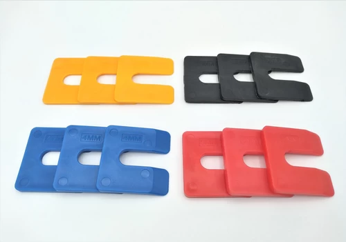 Подложките са универсални пълнители, които могат да се използват навсякъде, където са необходими. Това може да бъде под хладилник, зад панта, между мебел или в дървена преградна стена. Те могат да бъдат полезни на всякакви места, където нещо трябва да се запълни. Подложките се доставят в тава с няколко различни дебелини. Дебелината е посочена върху подложката в милиметри, а цветът на подложката също показва дебелината; всяка дебелина има свой собствен цвят.
