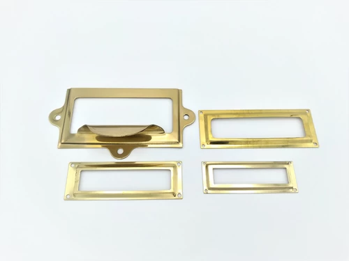 Рамките за етикети често се срещат върху стари мебели, като например шкафове за документи. Предлагаме рамки за етикети от никел и месинг, със или без дръжки. Те са фантастичен начин да възстановите стара мебел до предишната ѝ слава. Разбира се, можем да гравираме и плочи за рамките за етикети.